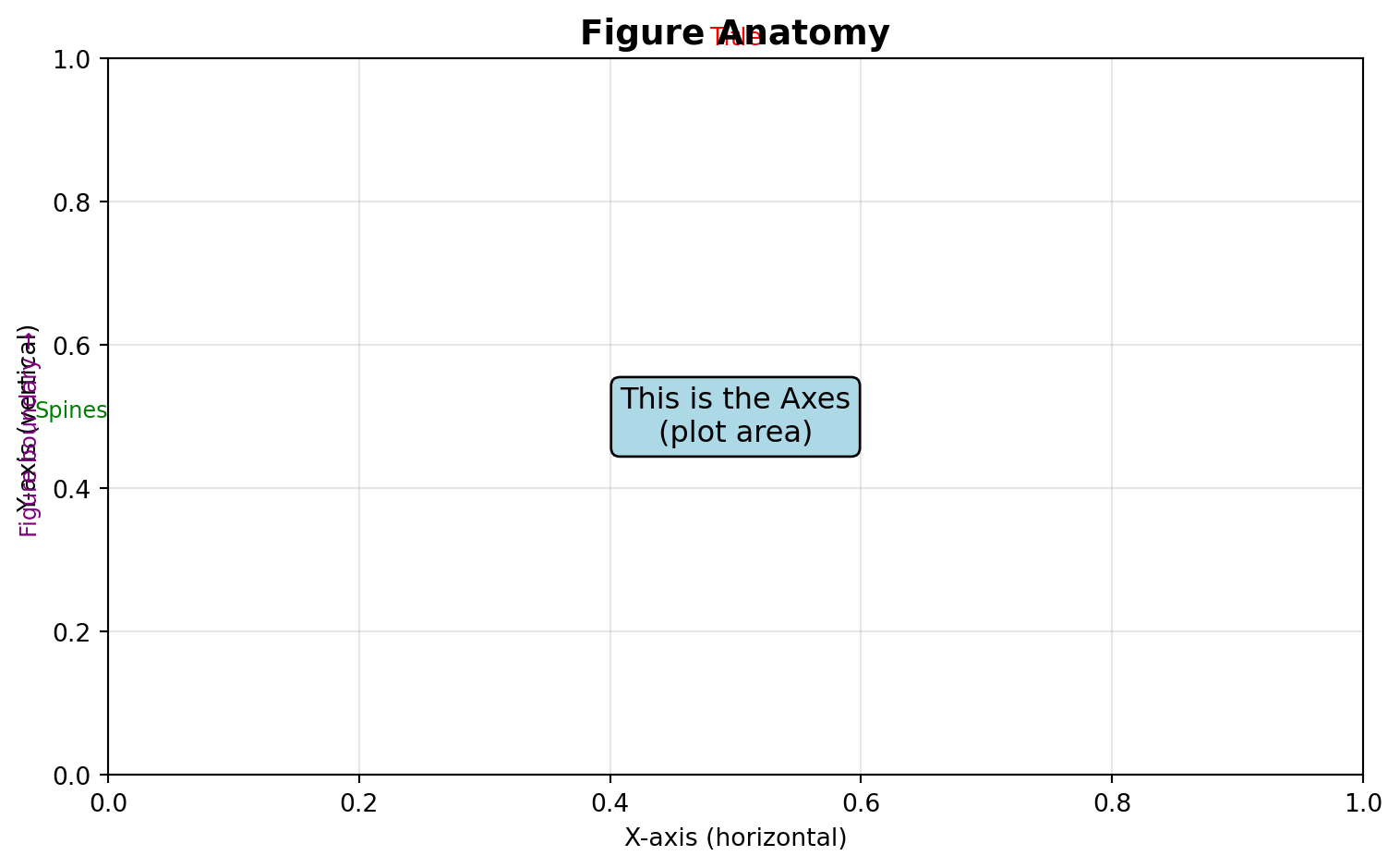 Axes: The actual plot area with data, ticks, labels (a Figure can have multiple Axes)