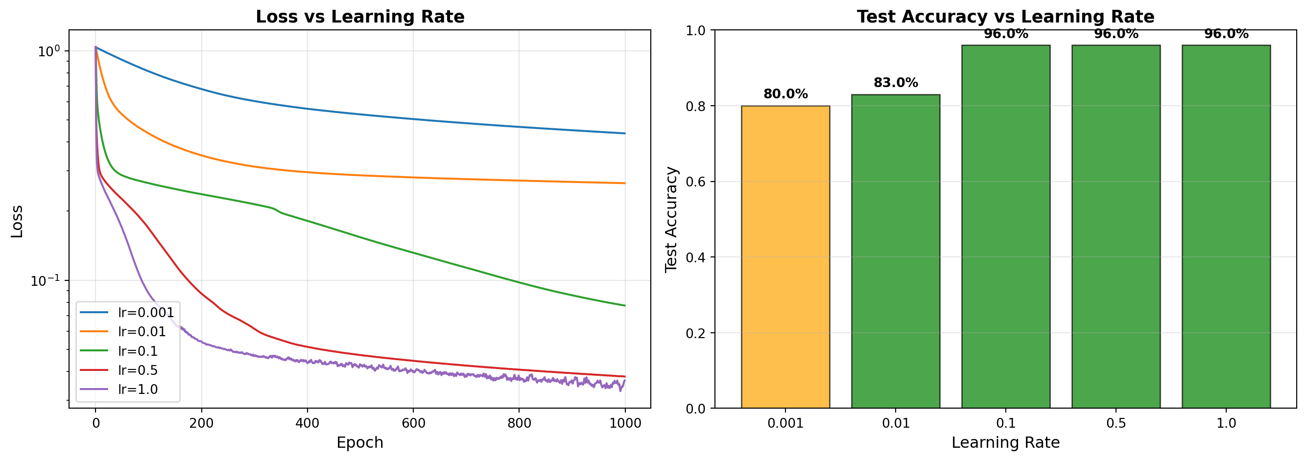 lr = 1.0 → Test Accuracy: 96.00% ✅
