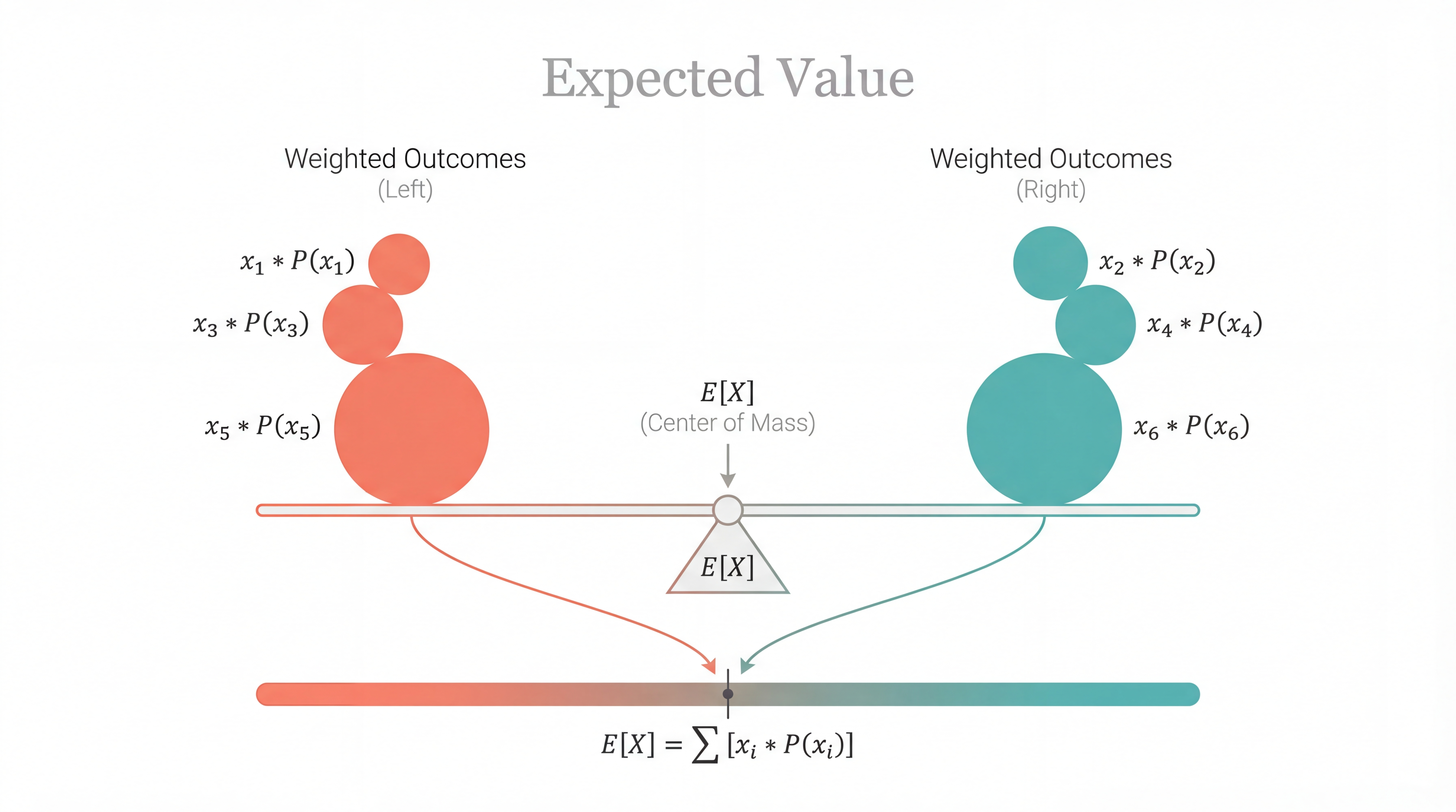 The expectation (or expected value) is this theoretical “long-run average”. It is the center of mass of the probability distribution.