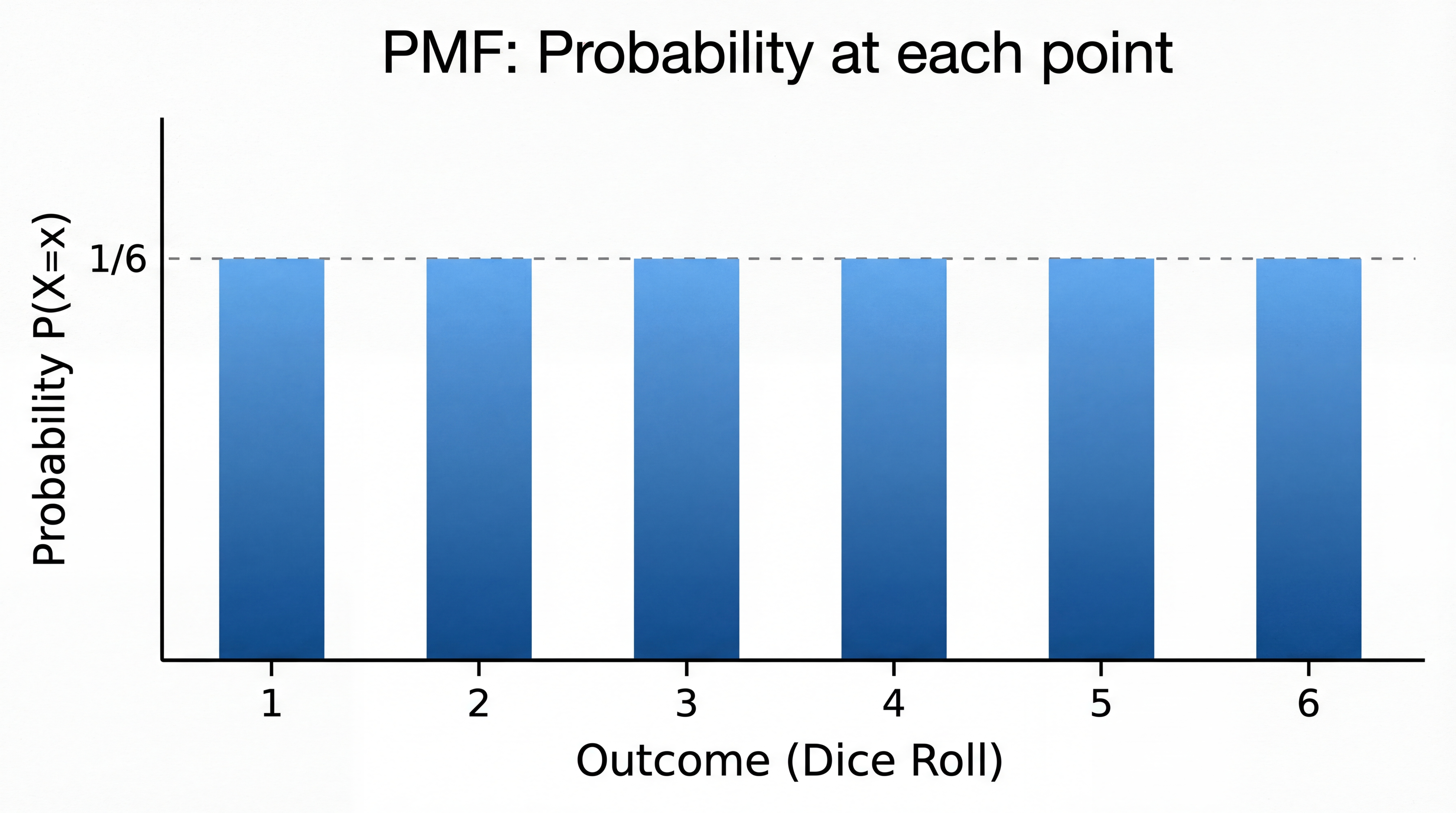 Use PMF when: - You want P(X = specific value) - You are working with discrete distributions - You want to visualize the probability distribution shape