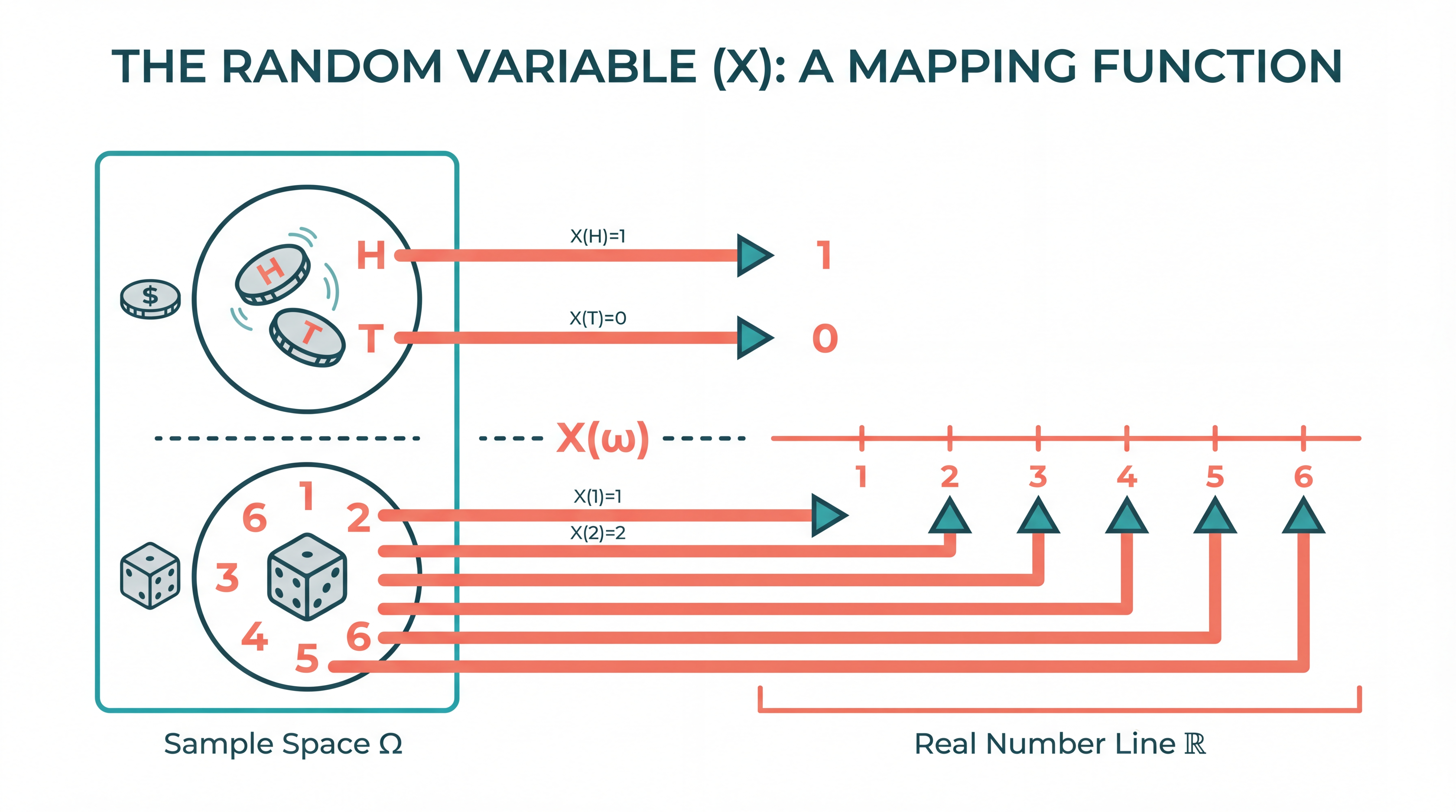 A random variable is a translator. It takes outcomes from the real world and converts them into numbers that we can compute with.